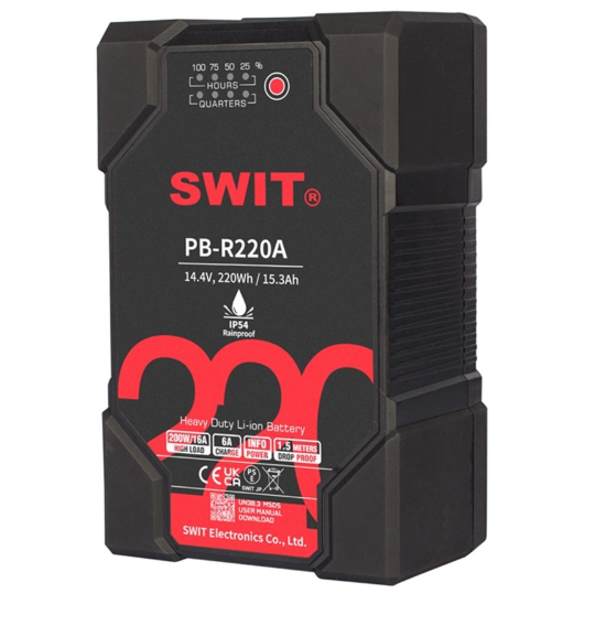SWIT PB-R220A je 220Wh batéria Gold-Mount určená na spoľahlivé napájanie profesionálnej kamerovej techniky v teréne. Vďaka robustnej konštrukcii, podpore vysokého zaťaženia a schopnosti rýchleho nabíjania zaručuje dlhodobý výkon pri náročnom fotografovaní v exteriéri a na pľaci.