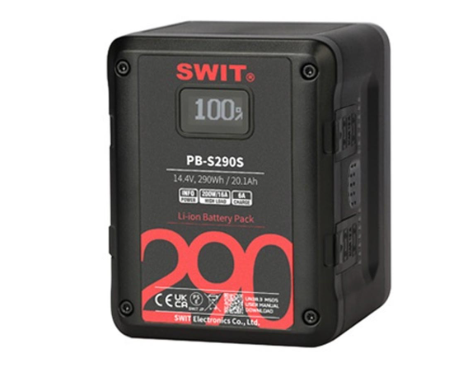 SWIT PB-S290S je vysokokapacitná 290 Wh (14,4 V) V-Mount cine batéria s viacerými výstupmi, vysokým výkonom 200 W, podporou rýchleho nabíjania a OLED displejom. Kompaktná, ale výkonná, je ideálna pre dlhodobé ENG, kinematografické a vysokonákladové kamerové zostavy.
