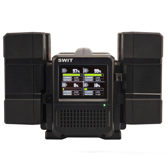 SWIT PC-P461S je plne simultánna 4-kanálová 4x100W superrýchla V-nabíjačka s informačným LCD displejom pre stav nabíjania jednotlivých batérií.