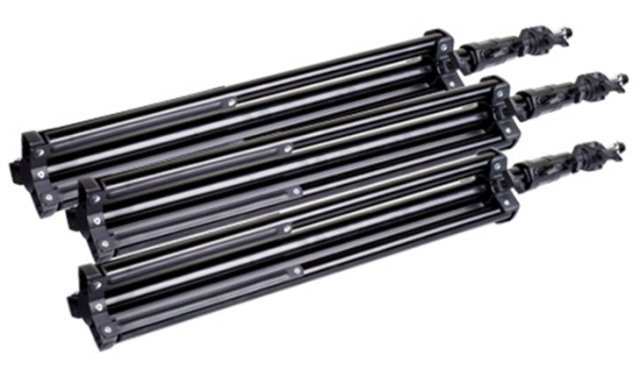 Sada svetelných stojanov SWIT QH-J2200 3KIT poskytuje spoľahlivé a univerzálne riešenie pre širokú škálu osvetľovacích zariadení používaných v oblasti televízneho vysielania, filmu, fotografie a videoprodukcie. Každý stojan je vyrobený z ľahkého, ale odolného hliníka a má 3-dielnu teleskopickú konštrukciu s maximálnou pracovnou výškou 2230 mm, vďaka čomu je vhodný na umiestnenie kľúčového, doplnkového a zadného osvetlenia.