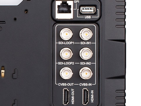 Monitor poskytuje 4-kolíkovú zásuvku XLR s jednosmerným vstupom 6,5-24 V a možno ho upevniť na V-mount, Gold mount alebo DV batériovú dosku