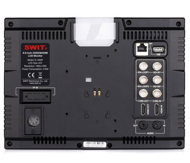 SWIT S-1093F (LUX) je profesionálny 9-palcový IPS LCD monitor určený pre vysielanie, filmovú produkciu a produkciu na mieste. Ponúka rozlíšenie Full HD 1920×1200, LED podsvietenie s jasom až 450 cd/m², kontrastný pomer 1000:1 a horizontálny/vertikálny pozorovací uhol 170° pre presné sledovanie obrazu z akejkoľvek pozície. Obrazovka je chránená integrovaným ochranným sklom LCD, ktoré zabraňuje poškriabaniu a poškodeniu.