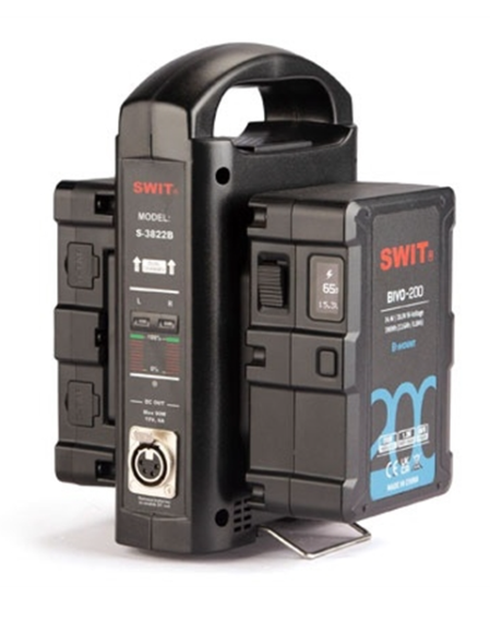 SWIT S-3822B je prenosná 2-kanálová rýchla nabíjačka pre batérie s B-mount konektorom, ktorá podporuje simultánne nabíjanie batérií SWIT BIVO, Bebob a Core B-mount. Každý kanál dodáva DC 16,8 V, 3 A, 50 W, čím zabezpečuje bezpečné a efektívne doplňovanie energie pre profesionálne použitie v teréne aj v štúdiu.