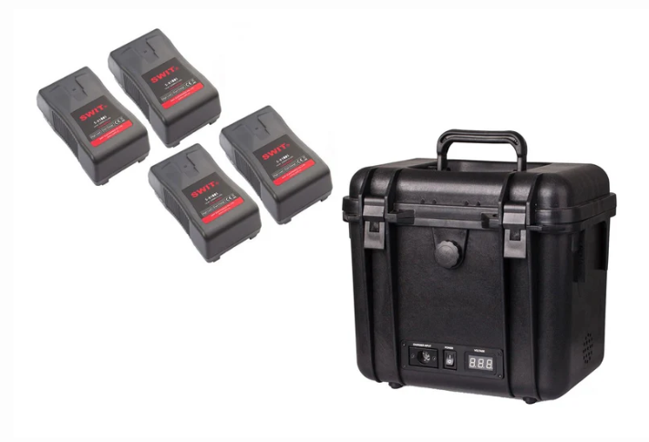SWIT S-4020 KIT je univerzálne napájacie riešenie pre profesionálnu produkciu videa a filmu, ktoré kombinuje napájaciu stanicu S-4020 12/24 V so štyrmi vysokovýkonnými batériami SWIT S-8180S 220 Wh s konektorom V-Mount. Stanica pojme 1–4 batérie V-Mount s celkovou kapacitou 880 Wh a poskytuje stabilné napájanie pre filmové kamery s vysokou spotrebou energie, LED svetlá a ďalšie vybavenie na pľaci.