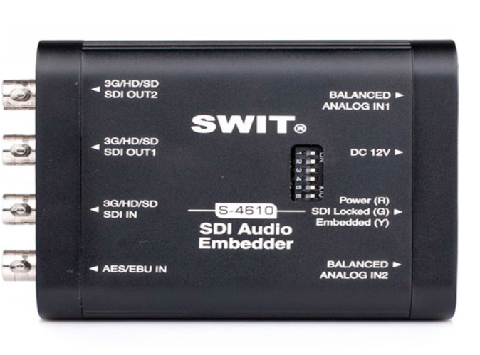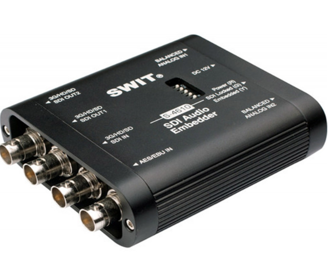 SWIT S-4610 je kompaktný a odolný SDI audio embedder, ktorý integruje digitálny aj analógový zvuk do SDI signálov a poskytuje spoľahlivé 3G/HD/SD-SDI výstupy pre profesionálnu produkciu v teréne a vysielacie aplikácie.