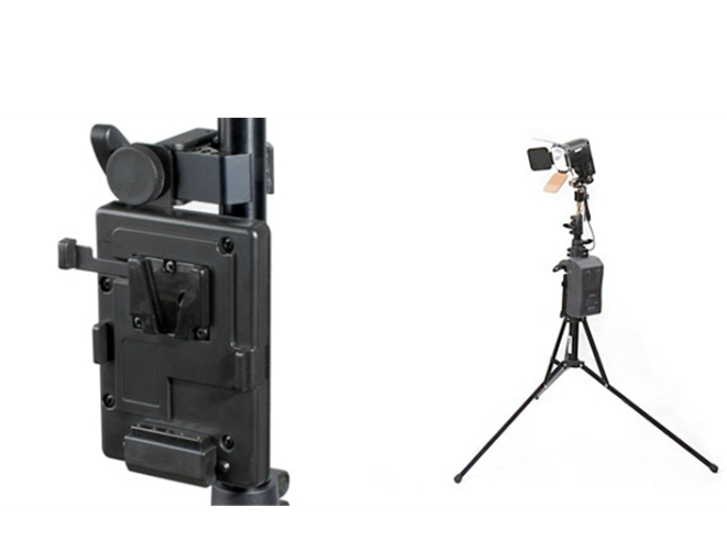 Doska podporuje štandardné batérie V-mount a je vybavená výstupom D-tap (P-tap) DC, ktorý dodáva natívne napätie batérie na napájanie LED svetiel, monitorov, bezdrôtových vysielačov alebo iného profesionálneho príslušenstva. Robustná konštrukcia svorky zaisťuje stabilné upevnenie na stojany a statívy, čo ju robí ideálnou pre osvetľovacie zostavy, mobilné zariadenia a pracovné postupy ENG.