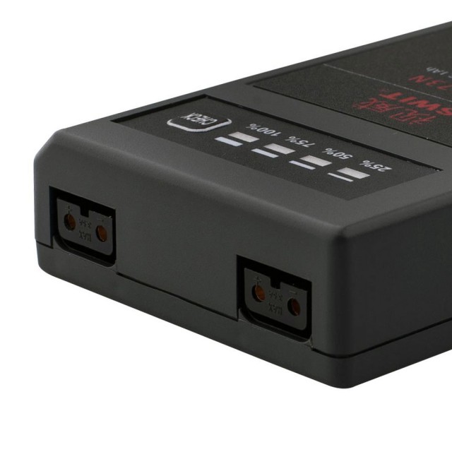 Na nabíjanie S-8073N prostredníctvom zásuvky D-tap môžete použiť SWIT PC-U130B2. Úplné nabitie 2x S-8073N trvá 4 hodiny, čo je rýchle a pohodlné.