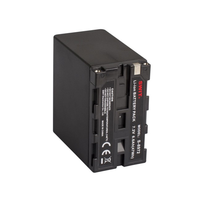 Batéria S-8972je náhradou za originálnu batériu SonyNP-F. Batéria má 7,2 V, 47 Wh a je vybavená konektorom Power Jack, ktorý je určený na pripojenie príslušenstva fotoaparátu, ako je napríklad svetlo fotoaparátu. Na zadnej strane batérie sa nachádza 4-úrovňový LED indikátor.