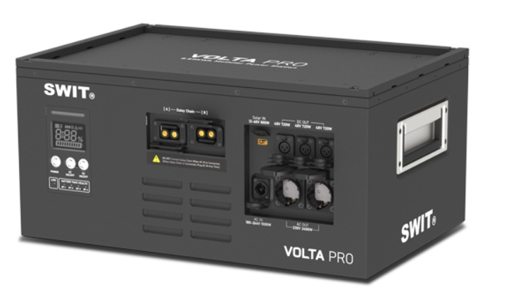 SWIT VOLTA PRO je modulárna mobilná elektráreň s kapacitou 9 kWh určená pre profesionálnu filmovú a video produkciu. V kompaktnom dizajne veľkosti Euroboxu poskytuje nepretržitý výkon až 3200 W s výstupmi AC a DC a ponúka vysokú kapacitu, odolnosť a flexibilný výkon pre náročné zariadenia na pľaci.