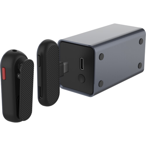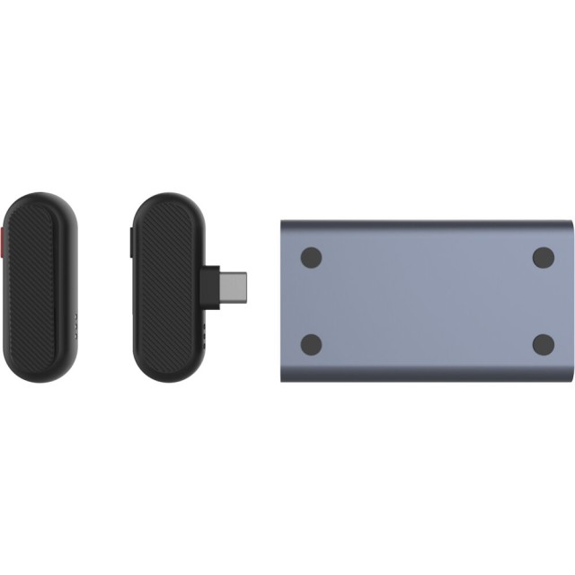 Spoločnosť SYNCO po prvýkrát oznámila nabíjacie puzdro pre nahrávací mikrofón. S týmto puzdrom je nabíjanie také jednoduché ako vloženie vysielača do puzdra. Červená kontrolka na vysielači vás informuje o tom, že sa nabíja. Prijímacia strana je napájaná z telefónu.