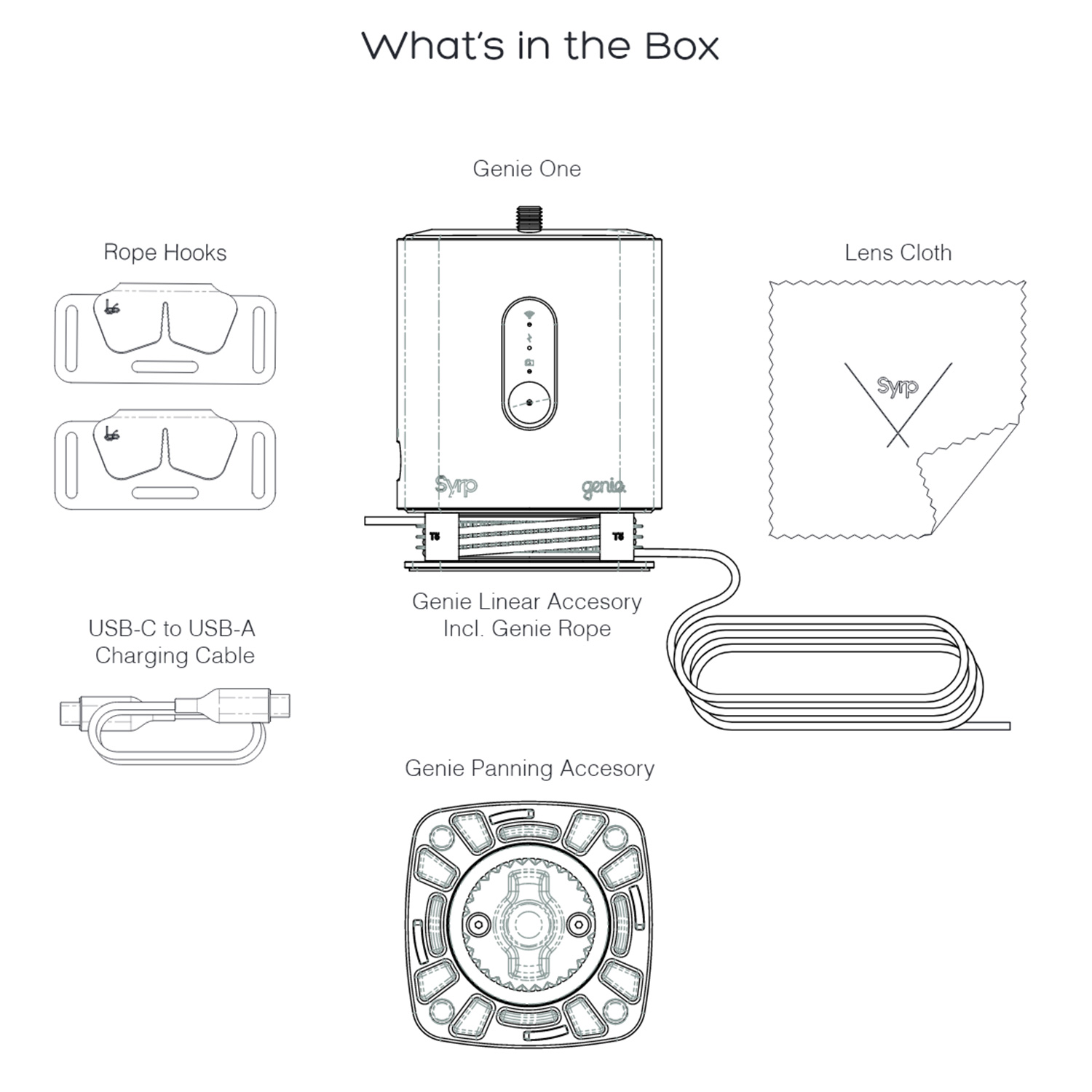 Genie One možno ovládať na diaľku pomocou aplikácie pre iOS/Android a rozhraní Bluetooth 4.2 a Wi-Fi. Aplikácia tiež umožňuje vytvárať kľúčové snímky, aktualizovať firmvér alebo vyvolávať predvoľby ("Hviezdy" atď.) pre maximálne zjednodušenie používania. Hoci ide o základný model v ponuke výrobcu, možno ho kombinovať napríklad s modelom Genie Mini II na riadenie pohybu až v troch osiach. Samozrejme, má odolné telo z hliníkovej zliatiny a integrovanú batériu s dlhou výdržou (až 5 h pri snímaní videa, max. 48 h pri časozbernom fotografovaní; dobíjanie cez USB-C, 5V/3A cca 2,5 h). Maximálne zaťaženie je 15 kg (pri vertikálnej montáži).