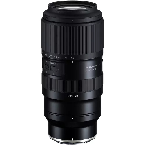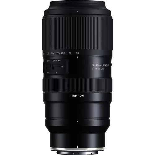 Objektív Tamron 50-400 mm F/4,5-6,3 Di III VC VXD ponúka výkonný 8-násobný optický zoom, ktorý začína na univerzálnej ohniskovej vzdialenosti 50 mm a končí na 400 mm pre väčšie priblíženie. Má svetelnosť f/4,5-6,3 (maximálna clona f/22-32) a je vybavený optickou stabilizáciou. Obsahuje aj špeciálne povrchové úpravy, ktoré zabezpečujú vynikajúcu kvalitu obrazu, minimalizujú optické chyby a zvyšujú odolnosť objektívu.