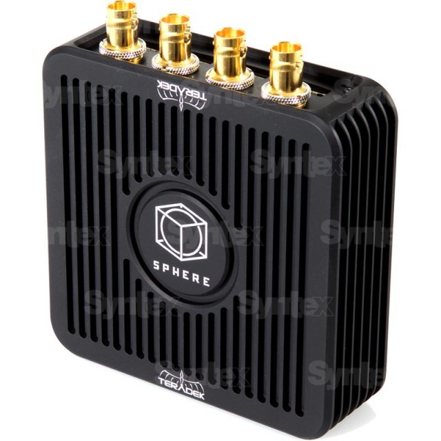 Teradek Sphere je kompaktní řešení pro náhled 360º videí natáčených pomocí sestav čtyř libovolných kamer (např. Blackmagic Micro Cinema Camera) s HDMI nebo SDI výstupy. Čtyři integrované USB sloty dovolují napájet také kamery GoPro apod., navíc je k dispozici i redundantní napájení (Lemo) a 10/100 Ethernet pro síťovou konektivitu a připojení druhé jednotky Sphere.