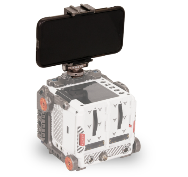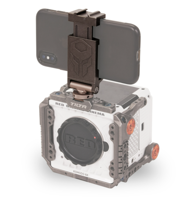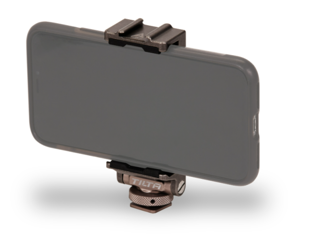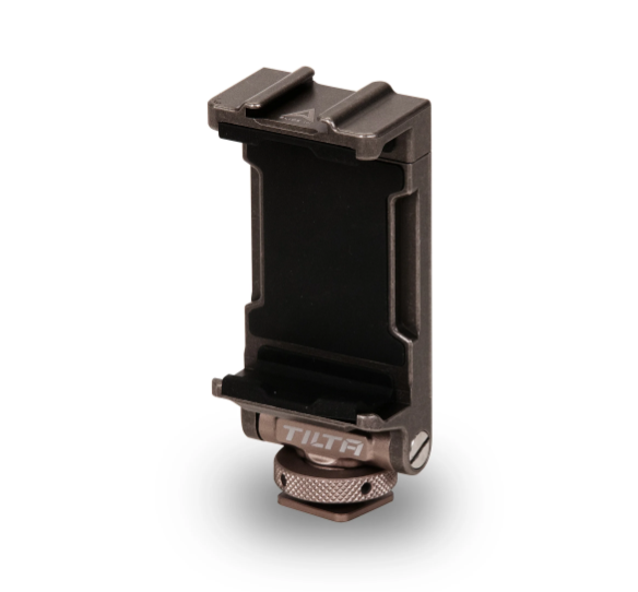 Nastaviteľný držiak na telefón Tilta TA-PMB s príslušenstvom Cold Shoe (Tactical Gray) je kompaktná, ľahká hliníková svorka, ktorá sa zasúva do akejkoľvek štandardnej studenej pätice a poskytuje nastaviteľný gumový úchyt na bezpečné uchytenie smartfónov s výškou až 92 mm – ideálny na upevnenie telefónu ako kontrolného monitora RED Komodo prostredníctvom aplikácie RED Control, hľadáčika režiséra alebo dokonca malých externých monitorov na klietkach, rukovätiach alebo gimbaloch.