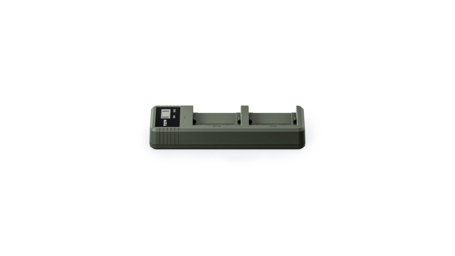 Nabíjačka batérií Tilta pre batérie NP F série L v zelenej farbe. Táto dvojkanálová nabíjačka poskytuje efektívny a spoľahlivý zdroj energie pre vašu kameru a osvetľovacie zariadenia. Katalógové číslo TBC LS GN.
