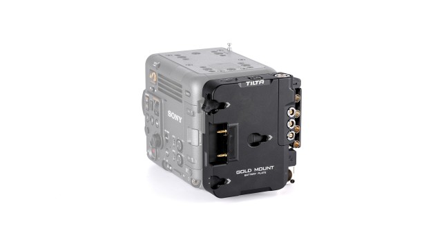Táto batériová doska prispôsobuje integrovanú batériovú dosku V-Mount fotoaparátu Sony Burano na batériovú dosku Gold Mount alebo V-Mount s ďalšími výstupmi napájania.