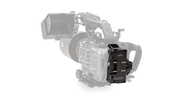 Táto batériová doska sa rýchlo upevní a uzamkne do batériovej komory fotoaparátu Sony FX6 a možno ju ďalej zabezpečiť pripojením k multifunkčnej hornej doske.