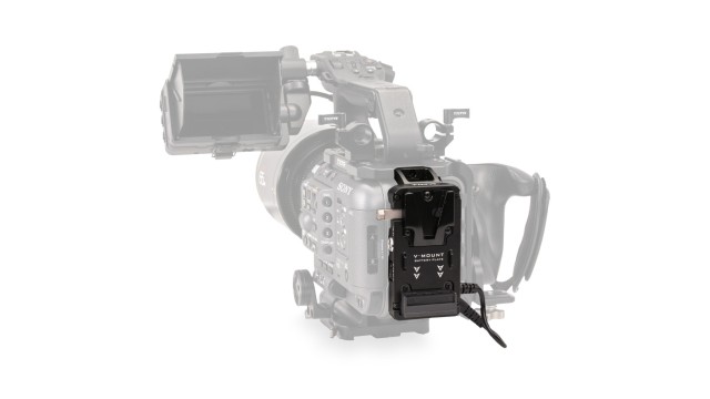 Táto batériová doska sa rýchlo upevní a uzamkne do batériovej komory fotoaparátu Sony FX6 a možno ju ďalej zabezpečiť pripojením k multifunkčnej hornej doske.
