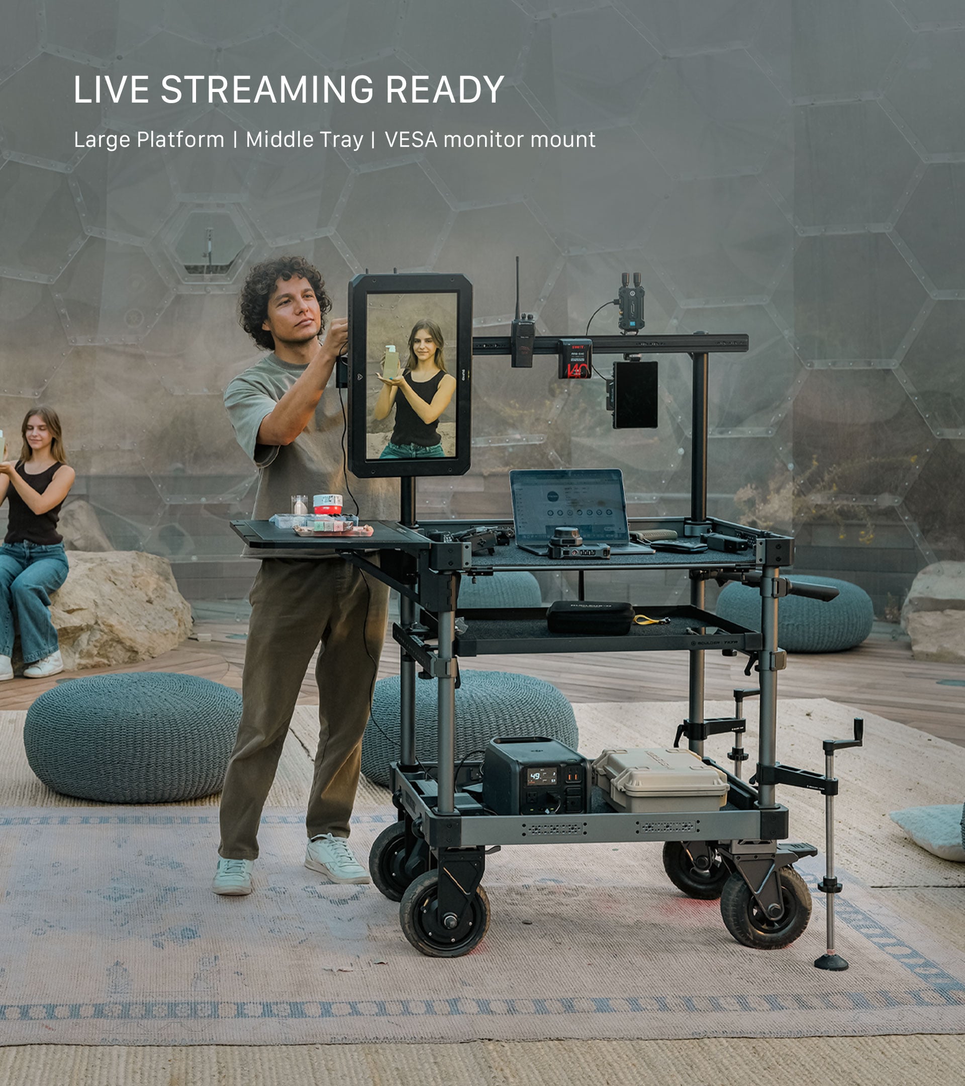 Tilta Boulder Camera Cart je odolná prenosná pracovná stanica navrhnutá tak, aby spĺňala požiadavky profesionálnych filmárov, technikov aj nadšencov DIY.