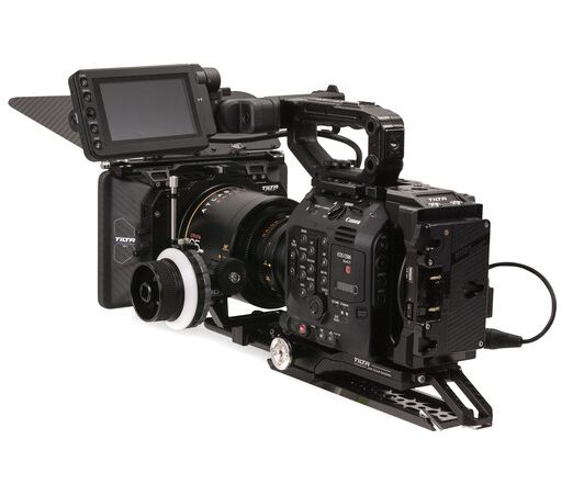 Súprava Tilta ES-T19-C-AB Kit C premení model C300 Mark III alebo C500 Mark II za pár minút na plne vybavenú kameru na rameno. Ľahká, ale pevná hliníková konštrukcia poskytuje úplnú ochranu a montážne body, zatiaľ čo doska Gold-Mount (s 3× D-Tap, 2/3-pin LEMO, USB) napája kameru a všetko príslušenstvo z jednej batérie. Rýchloupínacie základné dosky ponúkajú rozety ARRI, predné/zadné 15 mm LWS tyče a kompatibilitu s VCT-14 prostredníctvom priloženého predĺženia a 10″ rybinového spoja. Matná skrinka MB-T12 z uhlíkových vlákien sa dá okamžite pripevniť (súčasťou balenia sú adaptéry 80–134 mm) s tromi pevnými podnosmi 4×5,65″ a kompletnou sadou tvrdých matných skriniek a follow focus FF-T03 poskytuje plynulú presnosť s tvrdým zastavením. Ideálne pre dokumentaristov, ENG a naratívnych tvorcov, ktorí chcú rýchlu, vyváženú a káblovo riadenú zostavu priamo z kufra.