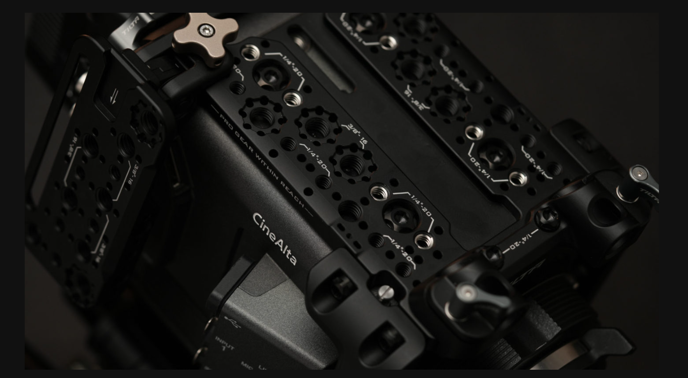 Súprava Tilta ESR-T18-B-V Pro Kit, navrhnutá špeciálne pre vlajkovú loď spoločnosti Sony, kameru 8K BURANO, premení už tak výkonnú kinematografickú kameru na plne modulárny, ramenný/gimbalový/štúdiový pracovný nástroj bez zbytočného zväčšenia rozmerov. Krytka prispôsobená tvaru zachováva pôvodné polohy rozety ARRI, takže štandardná ovládacie rukoväť Sony funguje perfektne, pričom pridáva desiatky závitov 1/4"-20 a 3/8"-16 (s polohovacími kolíkmi), predné/horné/bočné 15 mm svorky na tyče a rýchloupínateľnú 15 mm základnú dosku LWS so štandardným rybinovým spojom ARRI. Súčasťou balenia je doska batérie V-Mount, ktorá ponúka rozsiahle výstupy napájania (14,8 V P-Tap, 24 V a 14,8 V 3-pinový Fischer, 2-pinový LEMO, 65 W USB-C PD a 6-pinový DC vstup) pre svetlá, monitory, bezdrôtové sledovanie zaostrenia atď. Otočný držiak EVF, výškovo nastaviteľná bočná doska, multifunkčná horná rukoväť a kompaktná sada náradia dopĺňajú tento balík pripravený na natáčanie, ktorému dôverujú špičkové požičovne a kameramani po celom svete.