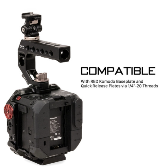 Súprava TA-T21-B-B Kit B od spoločnosti Tilta je dokonalým profesionálnym príslušenstvom pre fotoaparát Panasonic Lumix BGH1 (a BS1H). Hliníkový rám s presným tvarom obopína predovšetkým prednú časť fotoaparátu, čím mu dodáva elegantný, nenápadný vzhľad a zároveň poskytuje rozsiahle možnosti upevnenia: tri studené pätice, dve lišty NATO, dve rozety ARRI M6, viacero závitov 1/4"-20 a 3/8"-16 a sedem spodných závitov na statív pre dokonalé vyváženie gimbalu. Súčasťou balenia je ľahká rýchloupínateľná horná rukoväť s ďalším studným pätníkom a 15 mm portom pre tyč, zatiaľ čo napínací držiak monitora umožňuje rýchle a bezpečné umiestnenie monitora. Dvojité rýchloupínateľné dosky sa pripájajú priamo k spodnej časti rámu, čo umožňuje okamžitú výmenu statívu alebo hlavy, a špeciálny adaptér s EF bajonetom so štrbinovým nastavením zaisťuje pevnú stabilitu adaptéra objektívu.