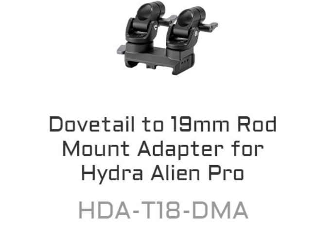 Adaptér Tilta HDA-T18-DMA na upevnenie na tyč s priemerom 19 mm je odolný hliníkový mostík v šedej farbe Space Grey, ktorý premieňa základňu s drážkou ARRI štandardu na tlmiacom ramene Hydra Alien Pro na pevnú 19 mm svorku na štúdiovú tyč, vďaka čomu môžete rameno s nosnosťou 20 kg pripevniť priamo na 19 mm Speed Rail, lešenie alebo akúkoľvek 19 mm rúrku pre ultra pevné nadhlavové, bočné alebo vlastné upevnenie na vozidle.