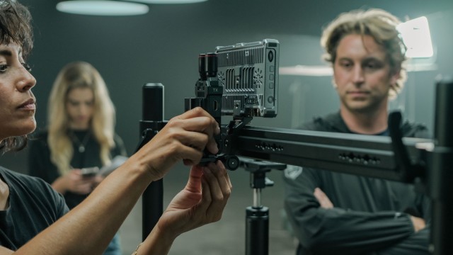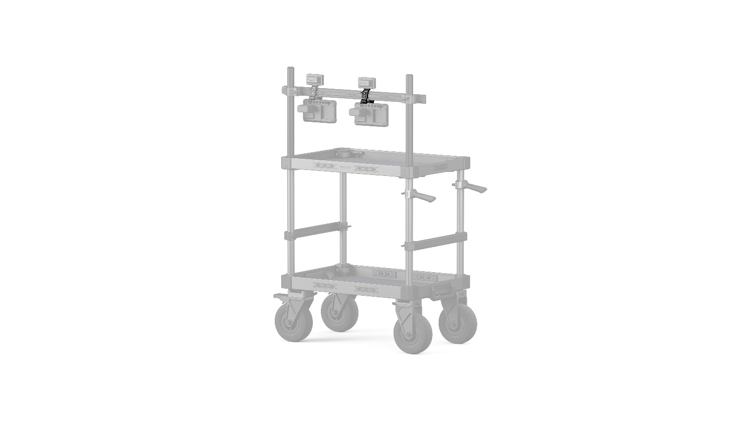 Držiak je vybavený dvojitými upevňovacími bodmi 1/4″-20 a lokalizačnými kolíkmi ARRI, ktoré zabezpečujú, že monitory, video prijímače alebo podobné príslušenstvo zostanú pevne na svojom mieste a odolajú otáčaniu počas pohybu. Funkcia prepojeného pohybu umožňuje obom namontovaným zariadeniam spoločne sa premiestňovať pozdĺž koľajnice, čím sa zachováva dokonalé vyrovnanie a zároveň sa zvyšuje flexibilita pracovného toku.