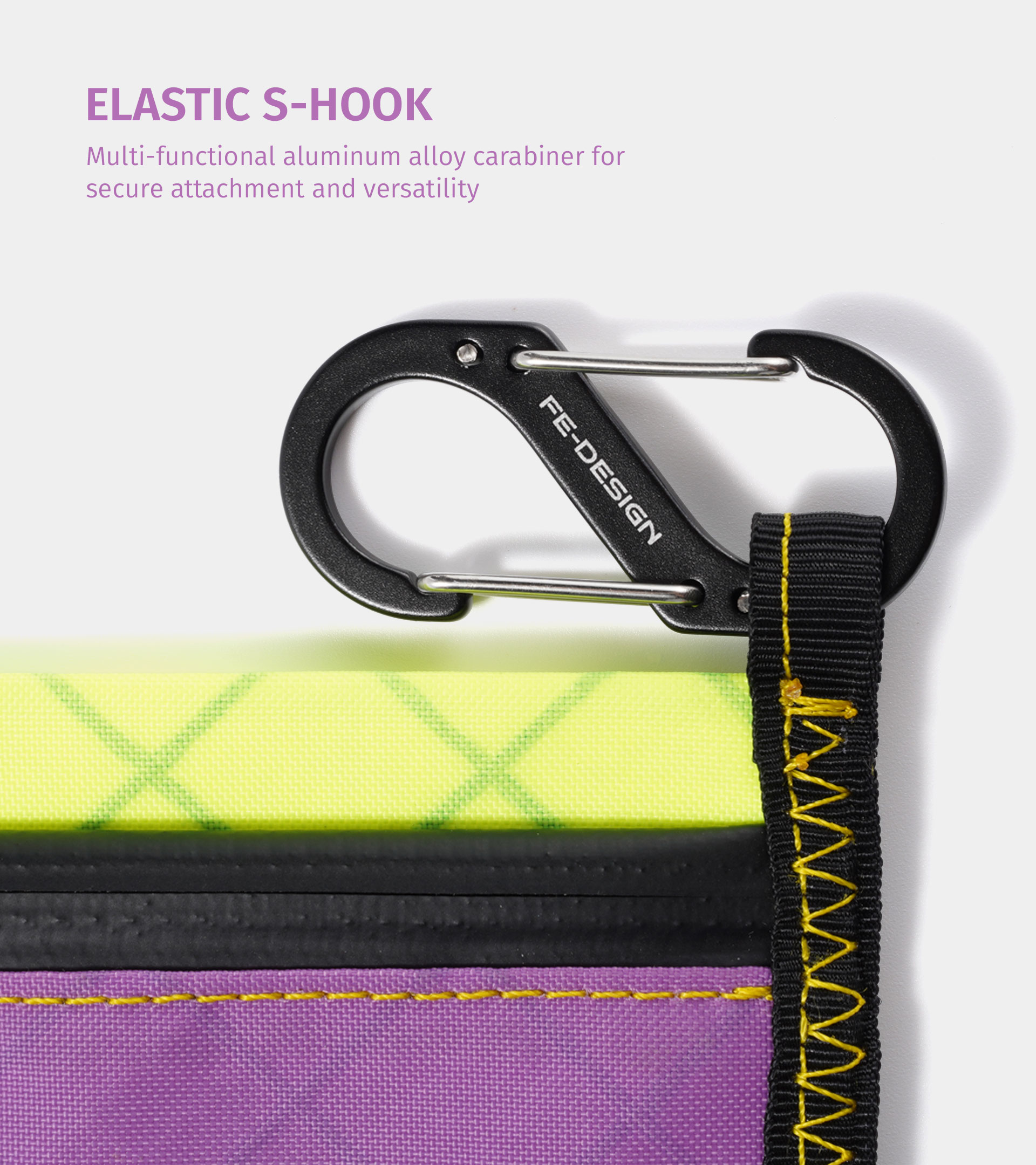 Každý detail držiteľa kariet Fé je starostlivo premyslený. Elastický S-Hook je univerzálny karabín z hliníkovej zliatiny na bezpečné pripevnenie k taškám, opaskom alebo výstroju.