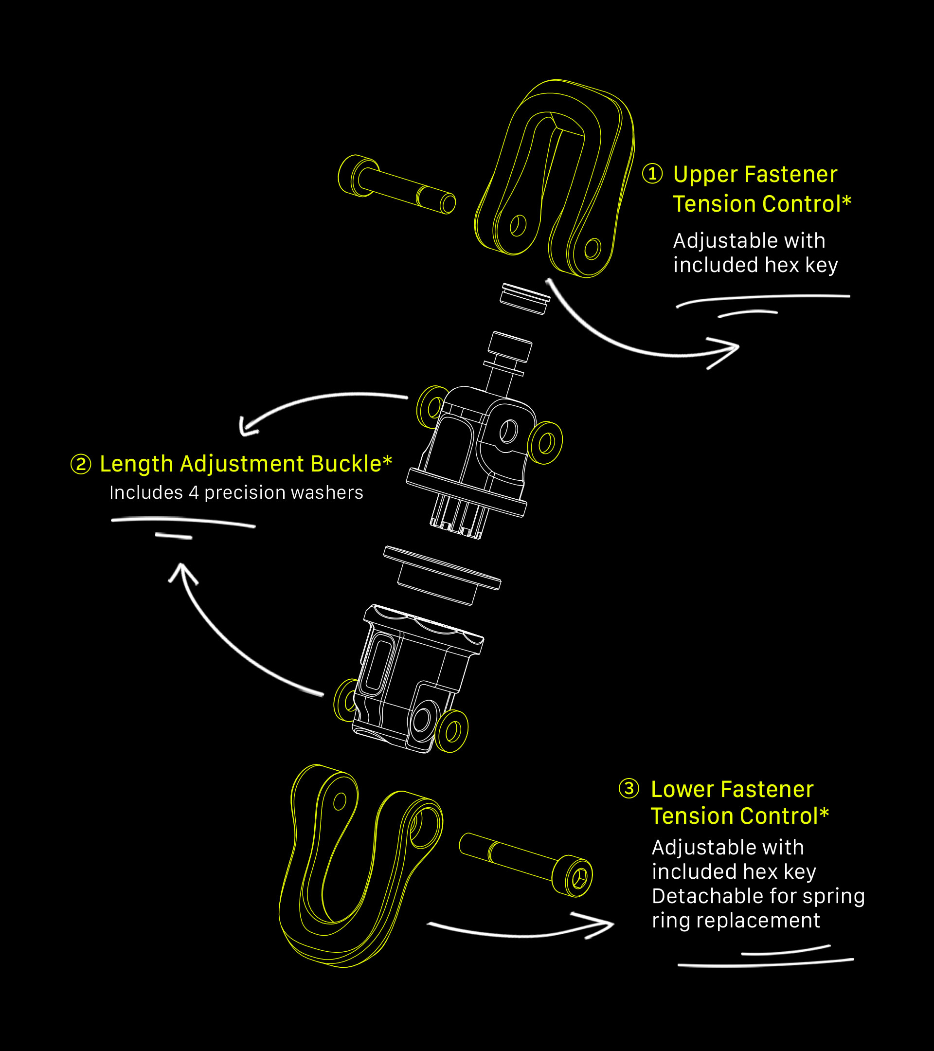 Intuitívna pracka umožňuje jednoduché a rýchle nastavenie dĺžky pre rôzne konfigurácie a pokročilé magnetické rýchloupínacie spony využívajú technológiu Fidlock HOOK pre extrémnu flexibilitu.
