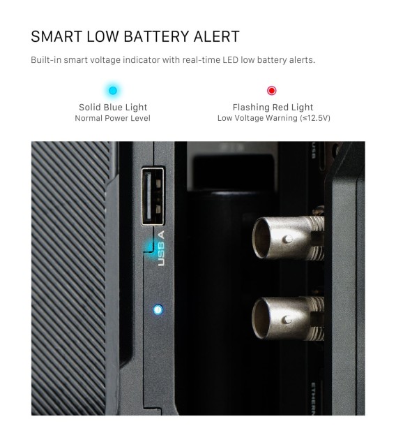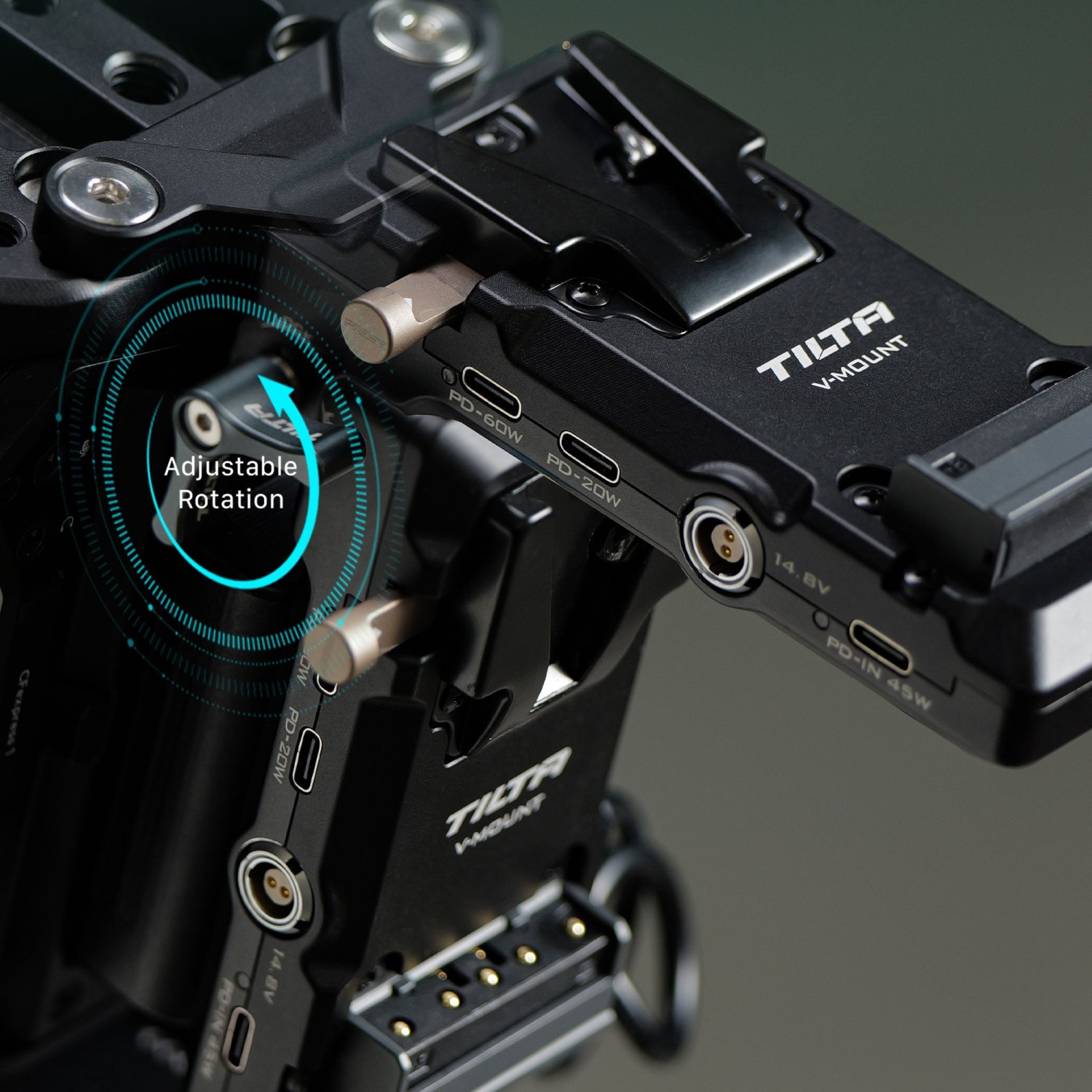 Vstup USB-C je obzvlášť užitočný, pretože umožňuje používateľom napájať batériovú dosku a všetko pripojené príslušenstvo bez pripojenia batérie V-Mount, čo je ideálne pre výmenu za chodu alebo montáž kamery v ľahších konfiguráciách.