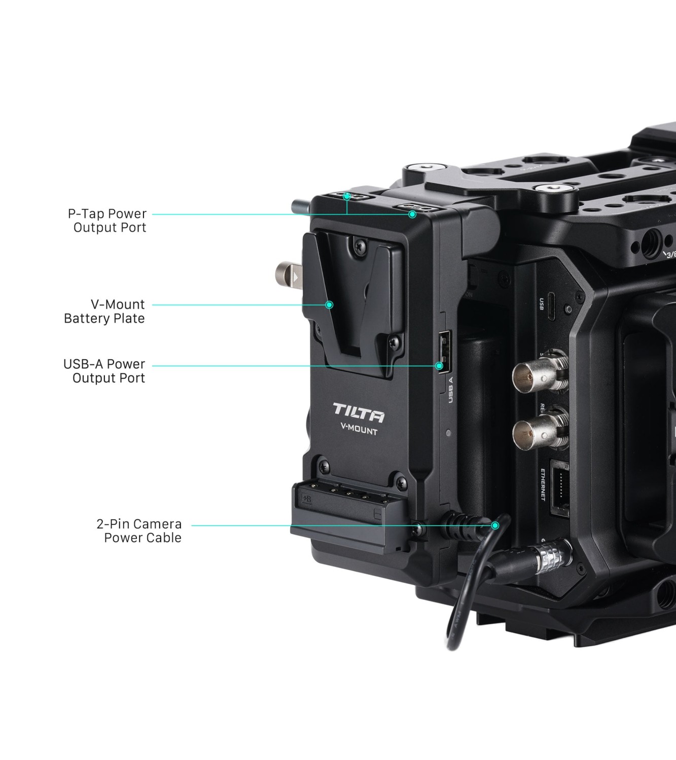 Táto batériová doska V-Mount sa pripája priamo k nášmu kamerovému rámu pre Blackmagic PYXIS 6K/12K a disponuje viacerými výstupnými portmi, ako sú PD USB-C, P-Tap a 2-pinový, ako aj vstupom PD USB-C.