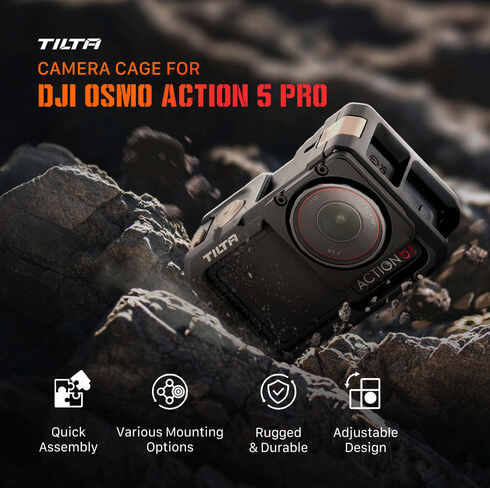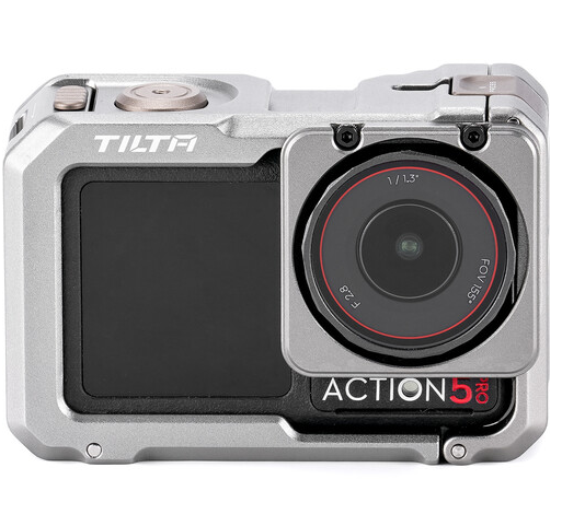 Tilta TA-T72-FCC-TG Full Camera Cage (Titanium Gray) je odolný ochranný rám pripravený na natáčanie pre DJI Osmo Action 5 Pro/4/3, ktorý pridáva podporu magnetického filtra, dvojité rýchloupínanie na oboch stranách pre okamžitú výmenu batérie, hornú studnú päticu, bočný závit 1/4"-20 a plnú kompatibilitu s magnetickou základnou doskou Tilta a akčnými filtrami – to všetko v ľahkom 150 g telese z horčíka a hliníka s tlmiaci silikónovými podložkami.