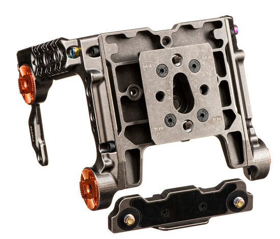Tilta TA-T08-FCC premení malú kameru RED KOMODO na plnohodnotné kinematografické zariadenie bez straty jej kompaktnosti. Klietka sa skladá z hornej dosky, ktorá sa pripevňuje priamo k telu kamery (s integrovanou studnou päticou + 1/4"-20 bodmi), ľavého/pravého bočného panelu a spodnej dosky, ktorá poskytuje desiatky protiskrutkových montážnych závitov pre dokonalé vyváženie gimbalu. Štyri rozety štandardu ARRI (dve na každej strane) sú kompatibilné s drevenými rukoväťami Tilta, predlžovacími ramenami alebo príslušenstvom roziet tretích strán. Špeciálna rýchloupínacia adaptérna doska (predávaná samostatne) umožňuje upevniť klietku na 15 mm LWS základnú dosku Tilta pre KOMODO za pár sekúnd. Každý povrch je pokrytý závitmi 1/4"-20 a 3/8"-16 s polohovacími kolíkmi ARRI, vďaka čomu je ideálny pre monitory, rekordéry, motory zaostrovania, horné rukoväte a príslušenstvo NATO.