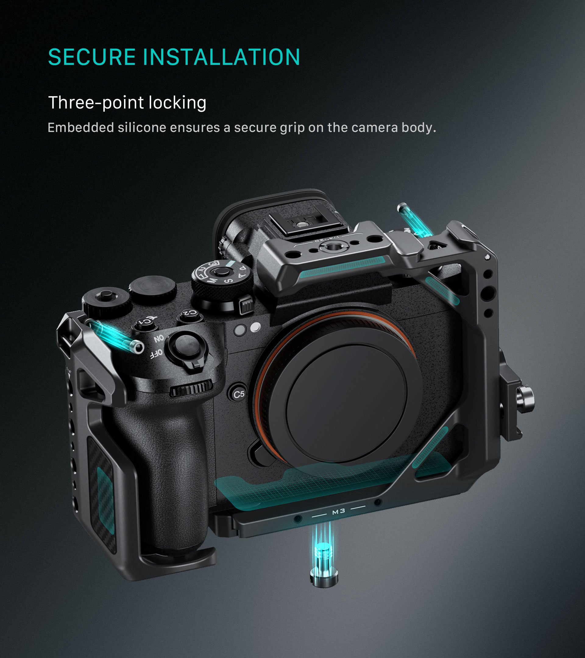 Predstavujeme klietku na celý fotoaparát pre Sony a1 II a a9 III. Táto klietka fotoaparátu poskytuje dodatočnú ochranu tela fotoaparátu a zároveň rozširuje možnosti montáže rôzneho príslušenstva.