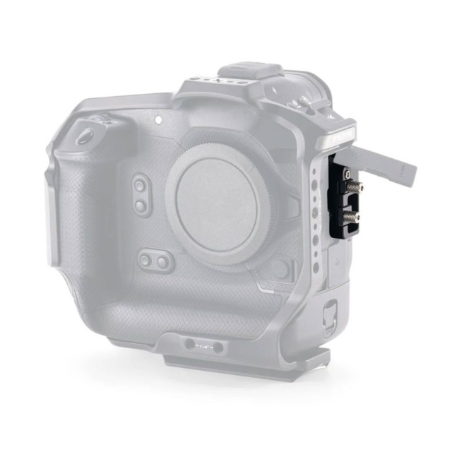 Táto svorka sa ľahko integruje do klietky Canon R1 pomocou špeciálneho montážneho bodu. Upevňuje sa pomocou imbusového kľúča na pevné pripevnenie ku klietke a je vybavená skrutkami s uťahovacou hlavou na rýchle pripojenie a odpojenie káblov. Svorka zvyšuje bezpečnosť pripojenia káblov a umožňuje pripojenie viacerých káblov naraz vrátane HDMI a USB-C pomocou jedného kompaktného príslušenstva.