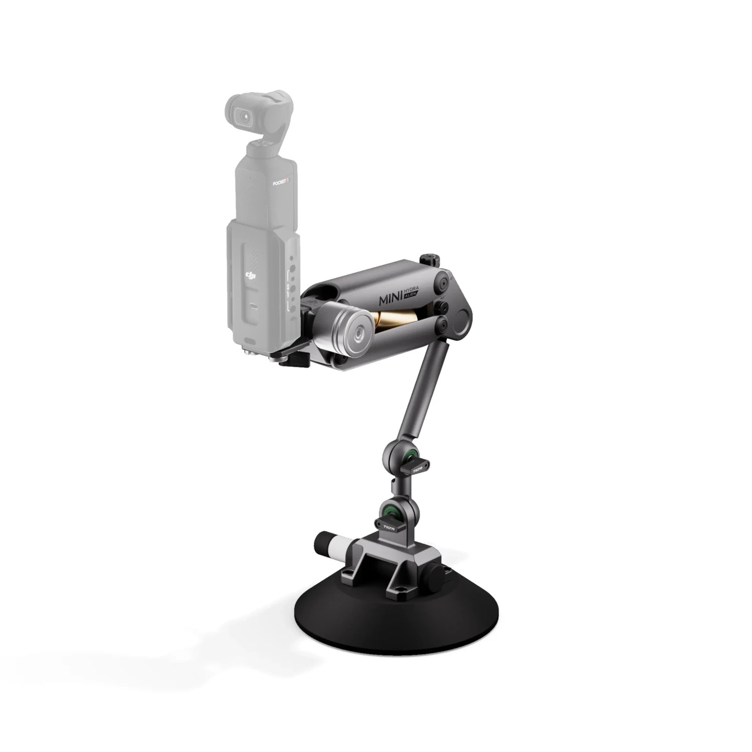 Súprava Tilta Hydra Alien Mini Electronic Suction Cup Kit v titánovo sivej farbe prináša profesionálnu stabilitu ľahkým kamerovým systémom s bezkonkurenčnou jednoduchosťou a presnosťou. Táto kompaktná súprava, inšpirovaná dizajnom ramena Hydra Arm, obsahuje rameno pohlcujúce nárazy, ktoré je kompatibilné s kamerami s hmotnosťou do 1,32 kg vrátane DJI Action 3/4, DJI Pocket 3, Insta360 X4/X3 a dokonca aj so smartfónmi v rámci ekosystému Khronos. Hlavná funkcia súpravy, elektronická prísavka napájaná batériou, ponúka monitorovanie tlaku v reálnom čase a automaticky zvyšuje sanie, aby sa zabránilo úniku, čím poskytuje bezpečné upevnenie počas scén s vysokým pohybom.