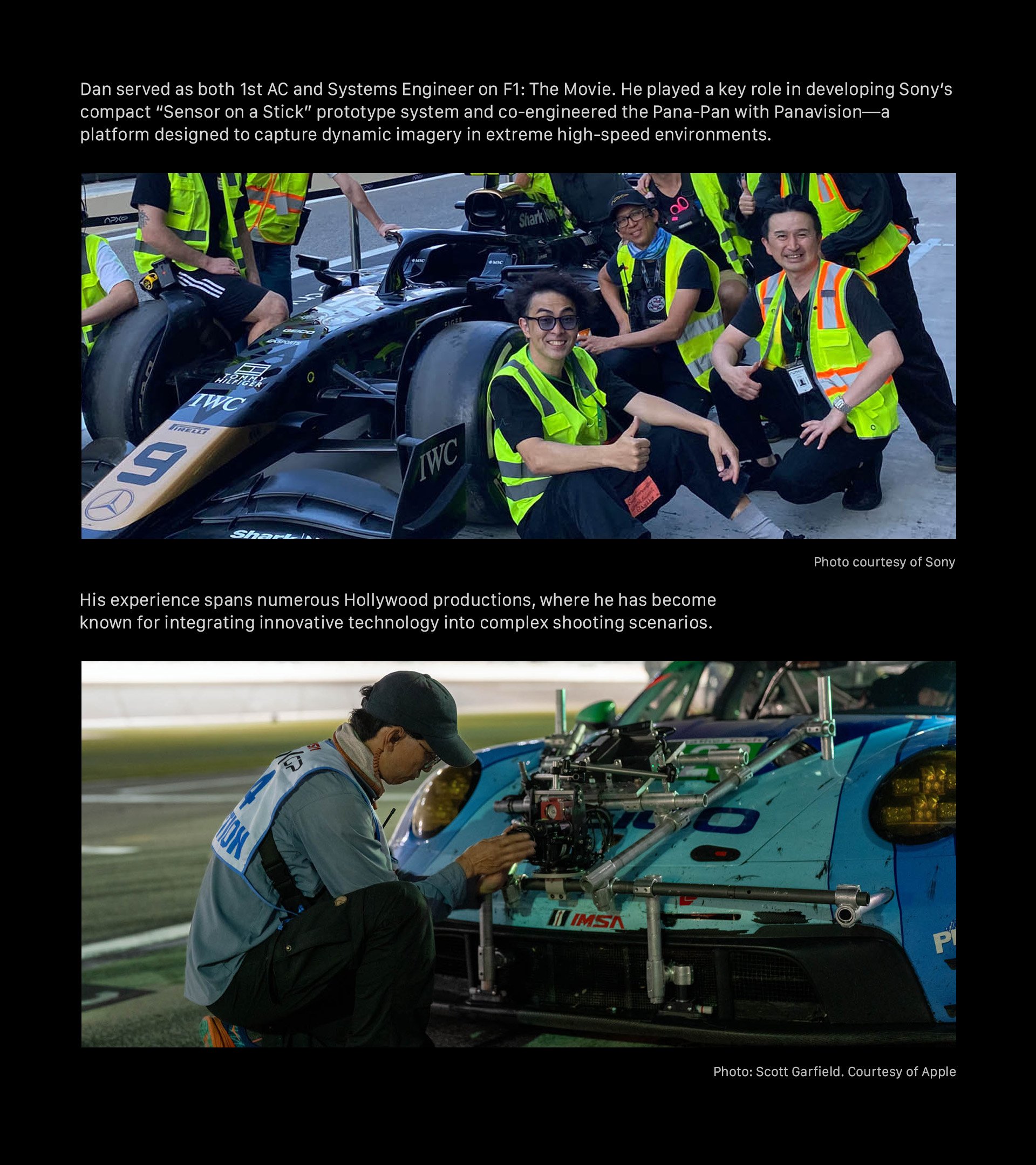 Dan Ming pôsobil ako 1. asistent kameramana a systémový inžinier vo filme F1: The Movie. Zohral kľúčovú úlohu pri vývoji kompaktného prototypového systému „Sensor on a Stick“ spoločnosti Sony a spolupracoval na vývoji systému Pana-Pan so spoločnosťou Panavision.