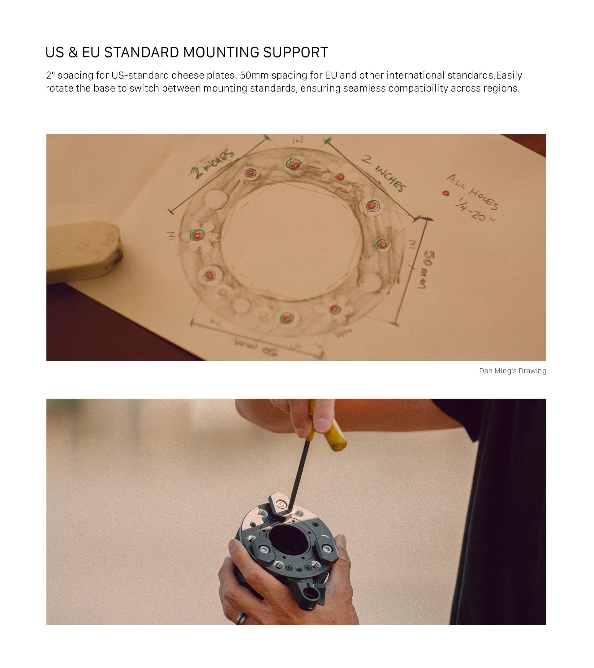 Základom tohto systému je otočná základňa s ozubenými kolieskami, ktoré umožňujú otáčanie motora zaostrovania. Kamery s malými rozmermi, ako sú akčné kamery alebo digitálne zrkadlovky, je možné pripevniť pomocou rýchloupínacej dosky.