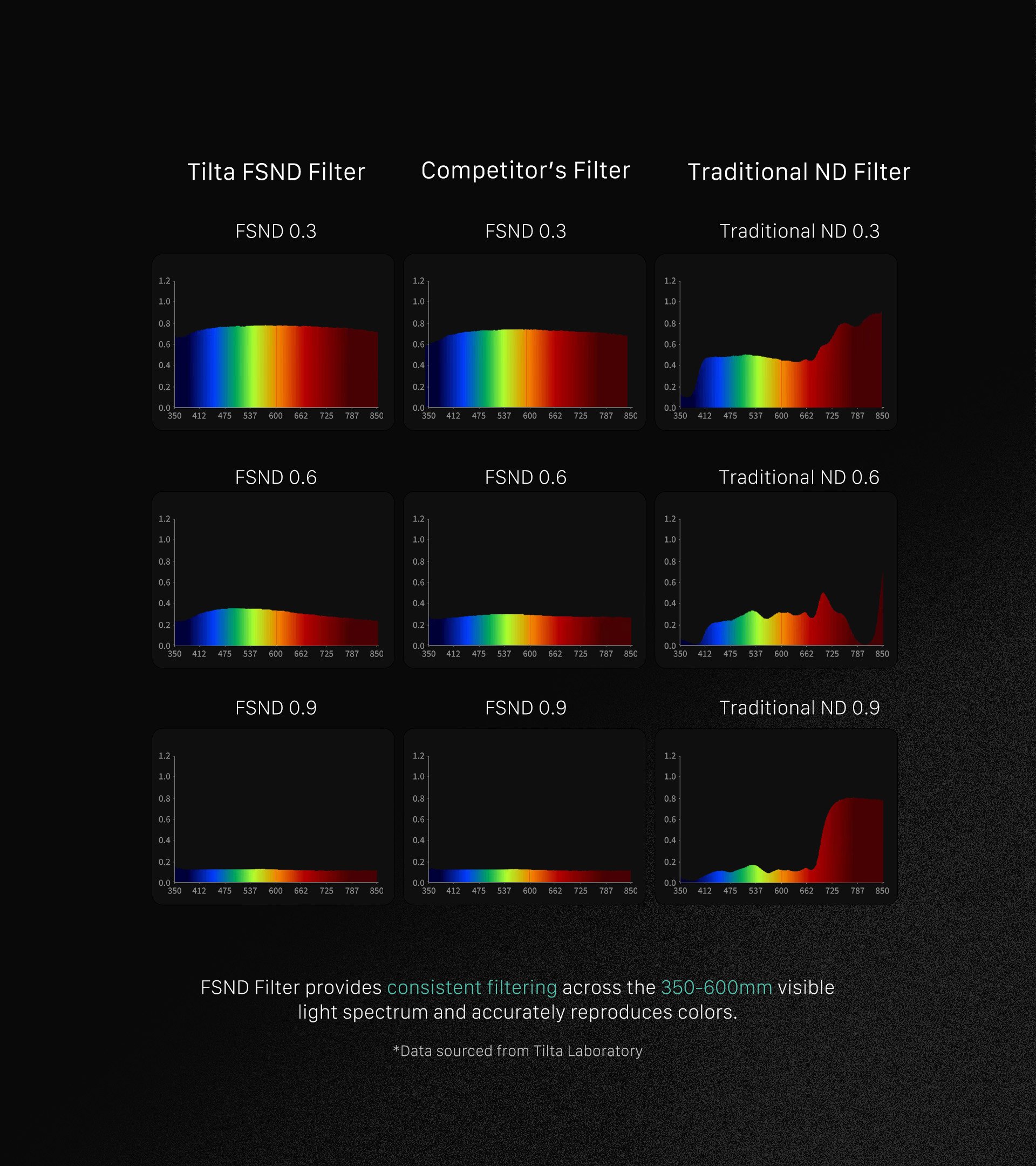 Priložené ND filtre poskytujú lepšiu kontrolu nad expozíciou tým, že umožňujú používateľom znížiť svetlo viditeľné pre snímač, čo tiež pomáha udržať konštantnú rýchlosť uzávierky pri snímaní v prostredí s jasnejším osvetlením, ako je denné svetlo.