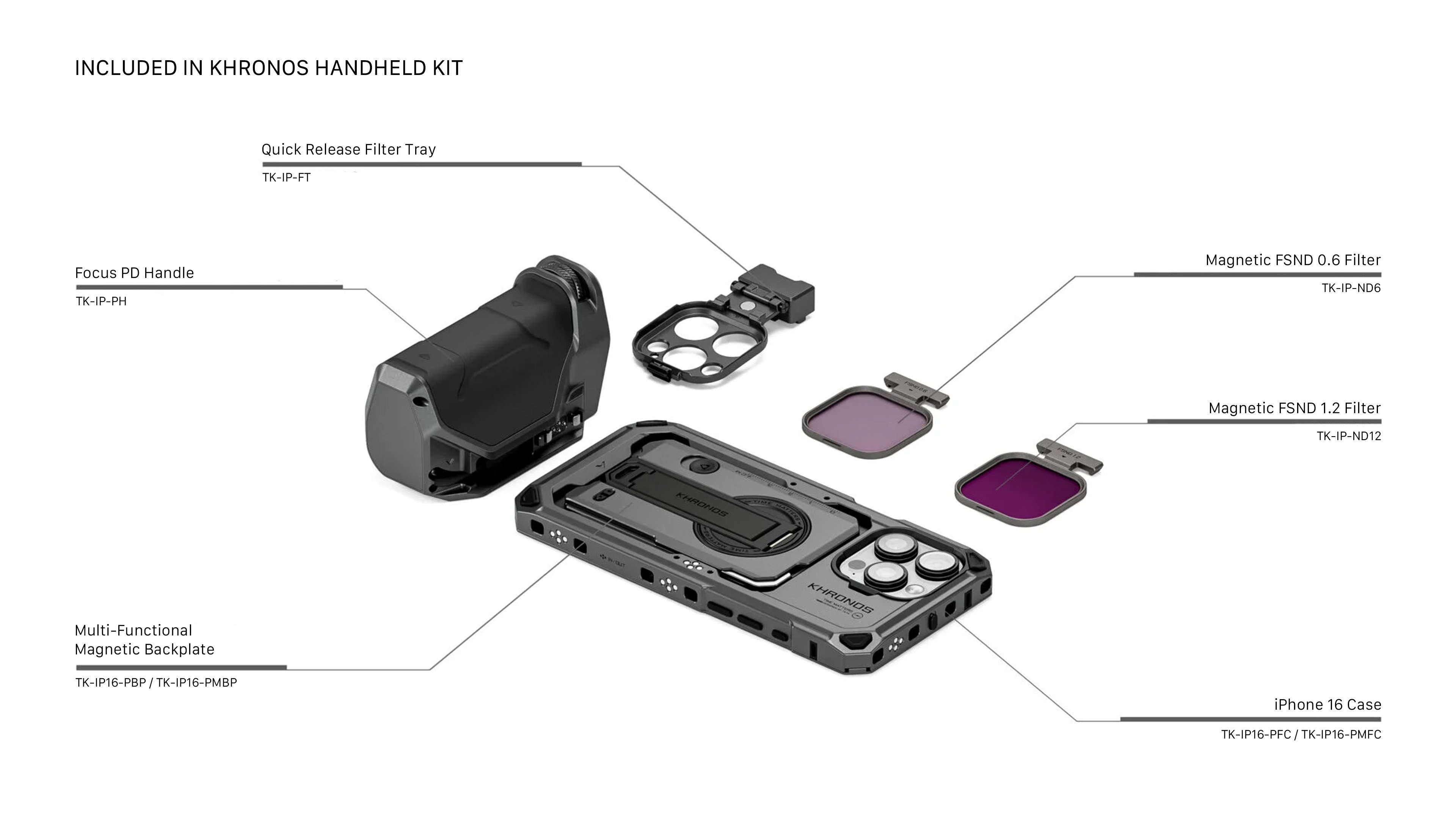 Predstavujeme ručnú súpravu Khronos pre iPhone 16 Pro / Pro Max, novú generáciu mobilného filmovania.