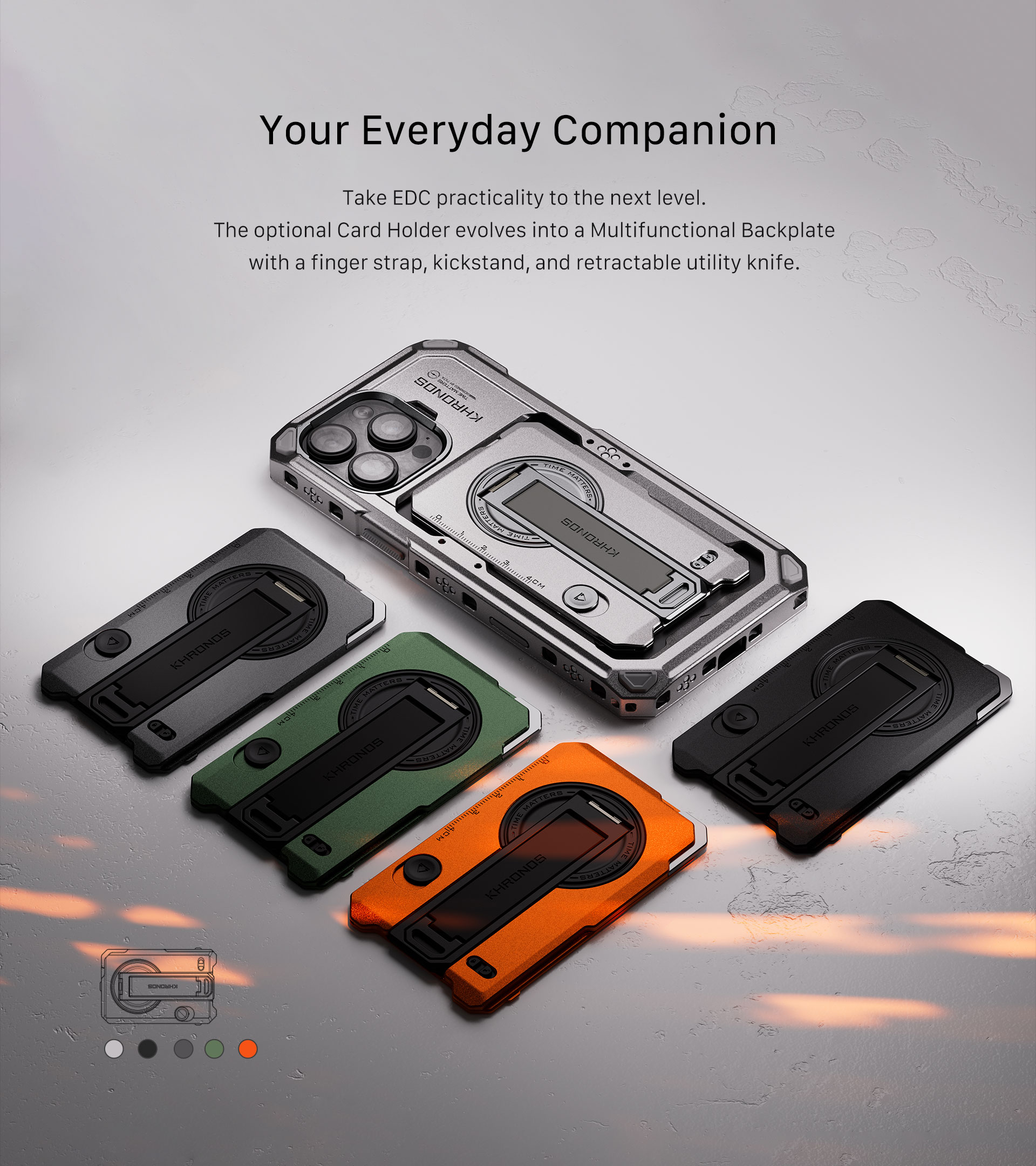 Puzdro Khronos, ktoré je k dispozícii vo farbách Space Grey, Titanium White, Forest Green, Black a Orange, dopĺňa dizajn vášho iPhonu a zároveň mu dodáva štýl.