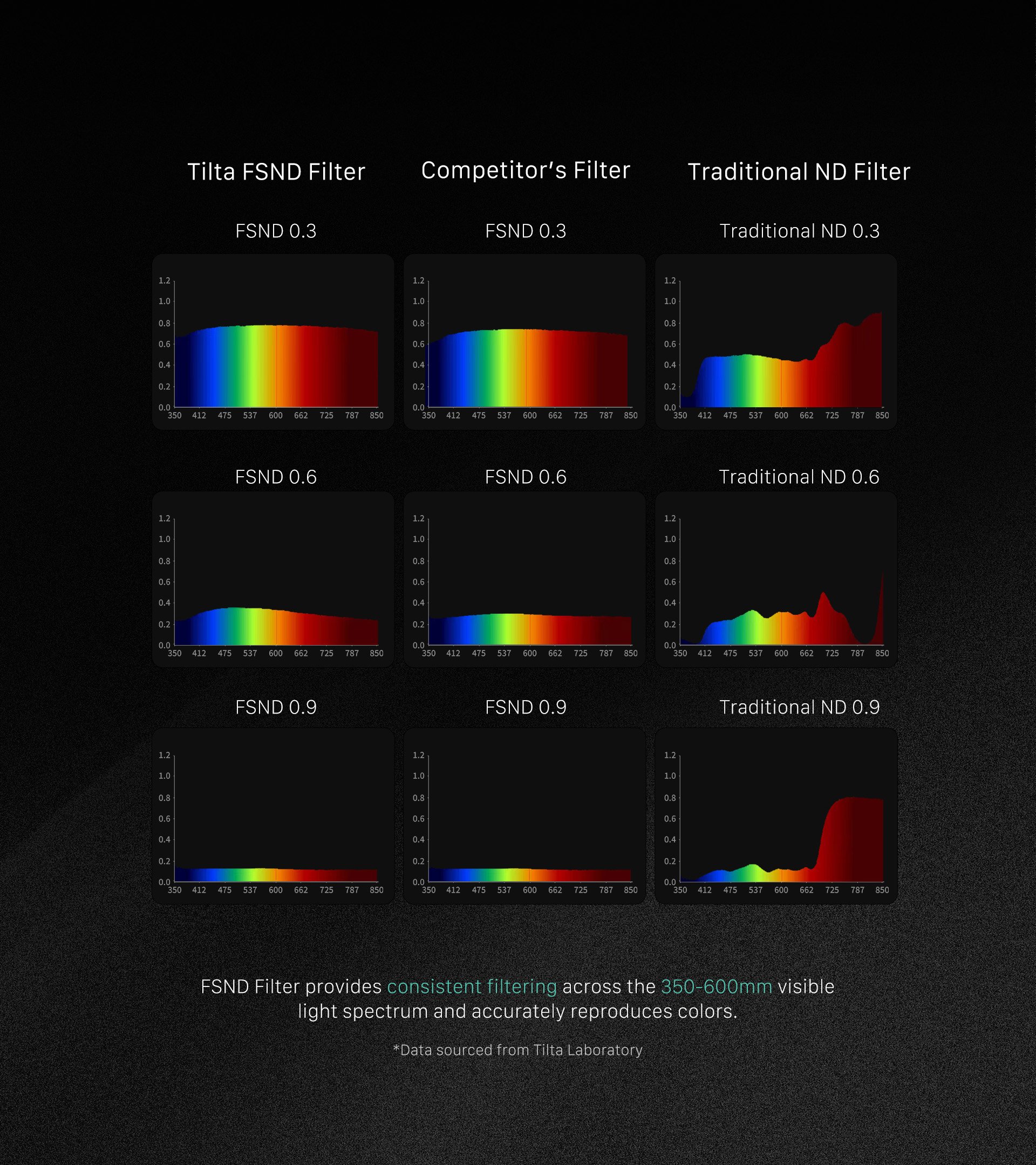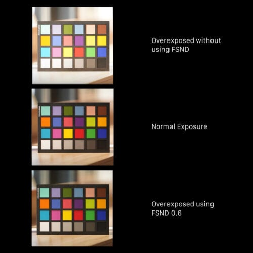 Priložené ND filtre poskytujú lepšiu kontrolu nad expozíciou tým, že umožňujú používateľom znížiť svetlo viditeľné pre snímač, čo tiež pomáha udržať konštantný čas uzávierky pri fotografovaní v prostredí s jasnejším osvetlením, ako je denné svetlo.