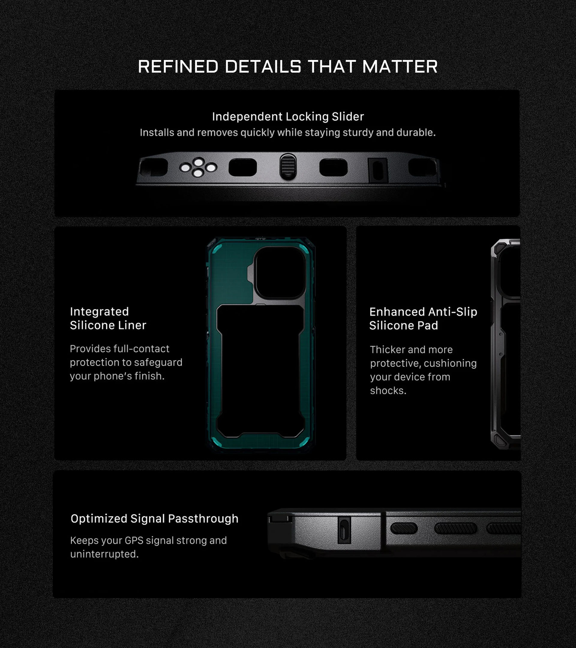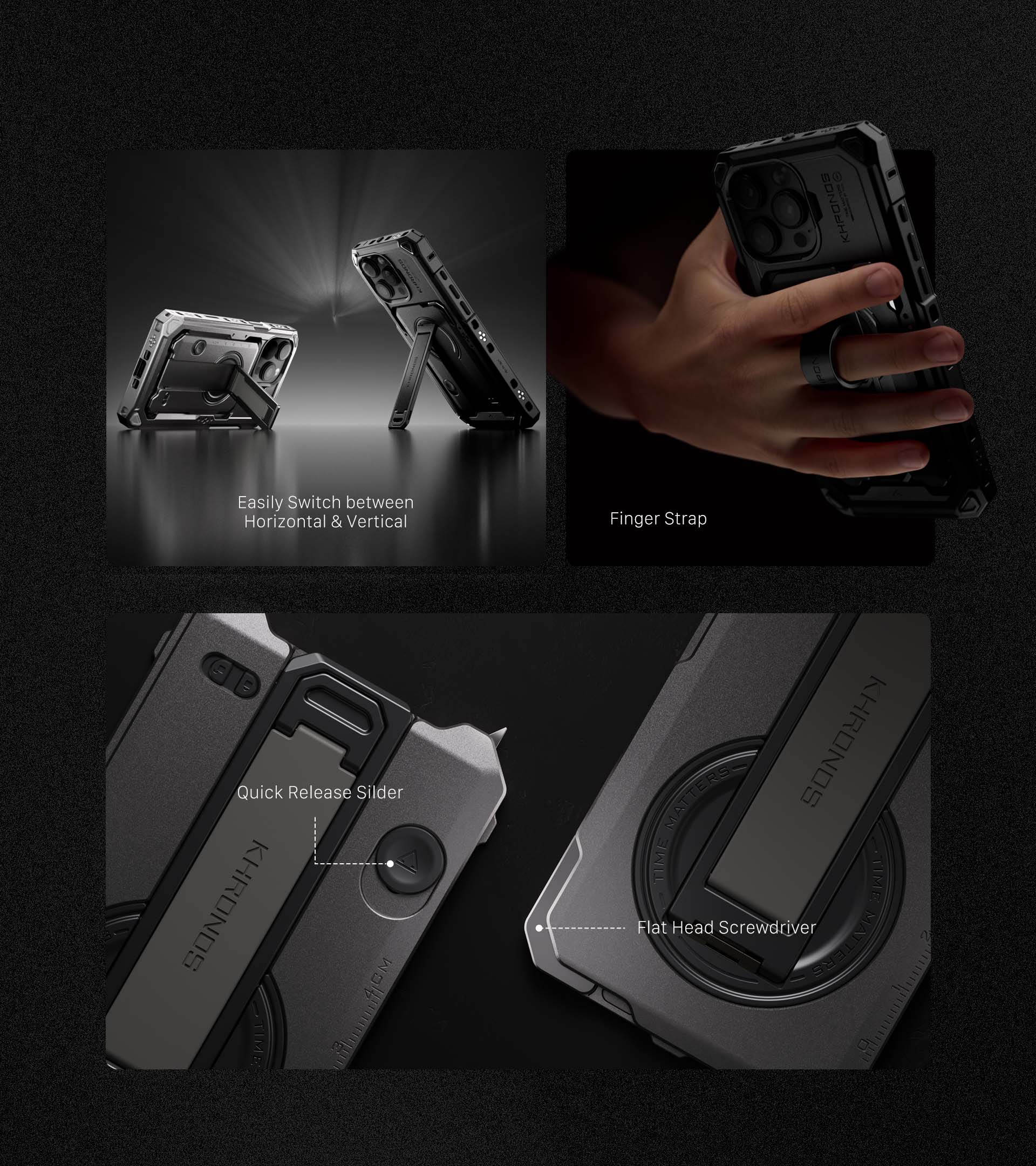 Toto puzdro na smartfón inšpirované klietkou fotoaparátu, starostlivo navrhnuté pre oba modely iPhonu 16, ponúka jedinečnú kombináciu funkčnosti a elegancie. Puzdro Khronos je skonštruované tak, aby chránilo váš telefón pred každodenným opotrebovaním, a ponúka spoľahlivú ochranu bez toho, aby ste museli robiť kompromisy v oblasti štýlu alebo funkčnosti.