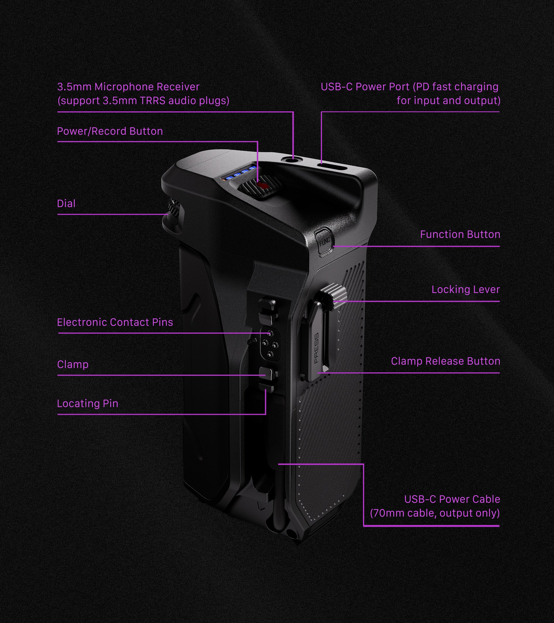 Rukoväť sa pripája k iPhonu 16 prostredníctvom integrovaného kábla USB-C a využíva technológiu bluetooth na ovládanie zaostrovania alebo zoomu prostredníctvom voliča na prednej strane rukoväte. To zároveň poskytuje väčšiu stabilitu pri ovládaní systému a tlačidlo nahrávania zabezpečuje, že používatelia nemusia pustiť rukoväť, aby začali nahrávať.