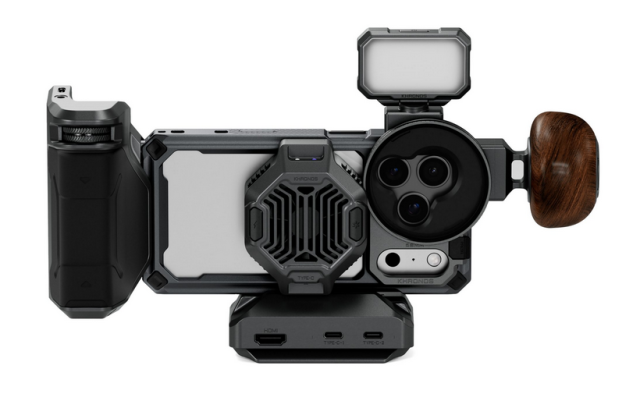 Tepelná regulácia: Chladiaci systém V2 pre Khronos je 22 W chladič s premenlivou frekvenciou, ktorý sa pripája magneticky (kompatibilný s MagSafe) a pomáha obmedziť prehrievanie počas dlhých nahrávacích relácií a zároveň bezdrôtovo nabíja iPhone.