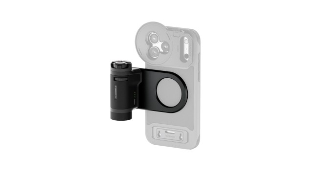 Súčasťou balenia je magnetický držiak, ktorý umožňuje bezpečné pripojenie rukoväte k iPhone a poskytuje flexibilitu a jednoduché použitie. Vďaka pripojeniu Bluetooth rukoväť nezaberá port USB-C na iPhone a zároveň umožňuje plynulé ovládanie zaostrenia, zoomu, spúšte a nahrávania priamo z rukoväte.