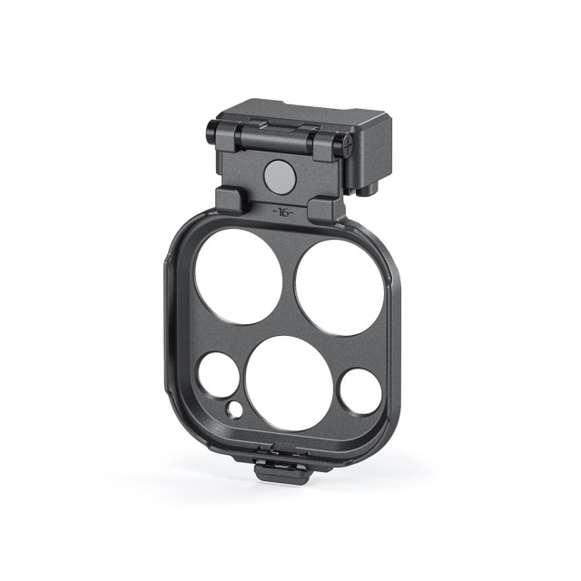 Zásobník je vybavený otočným držiakom, ktorý umožňuje, aby zásobník spadol na miesto nad všetkými tromi objektívmi iPhone 16 Pro/Pro Max.