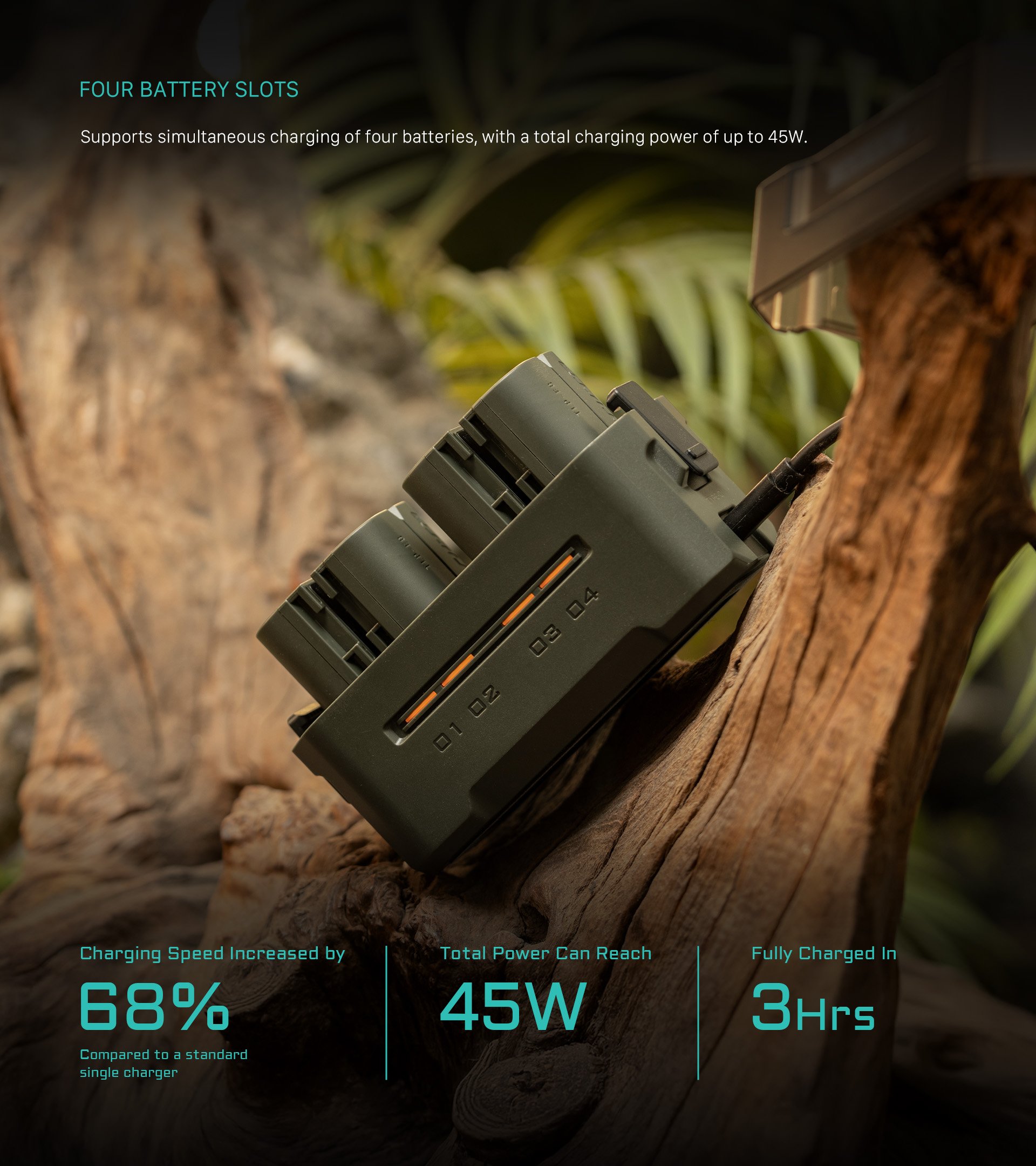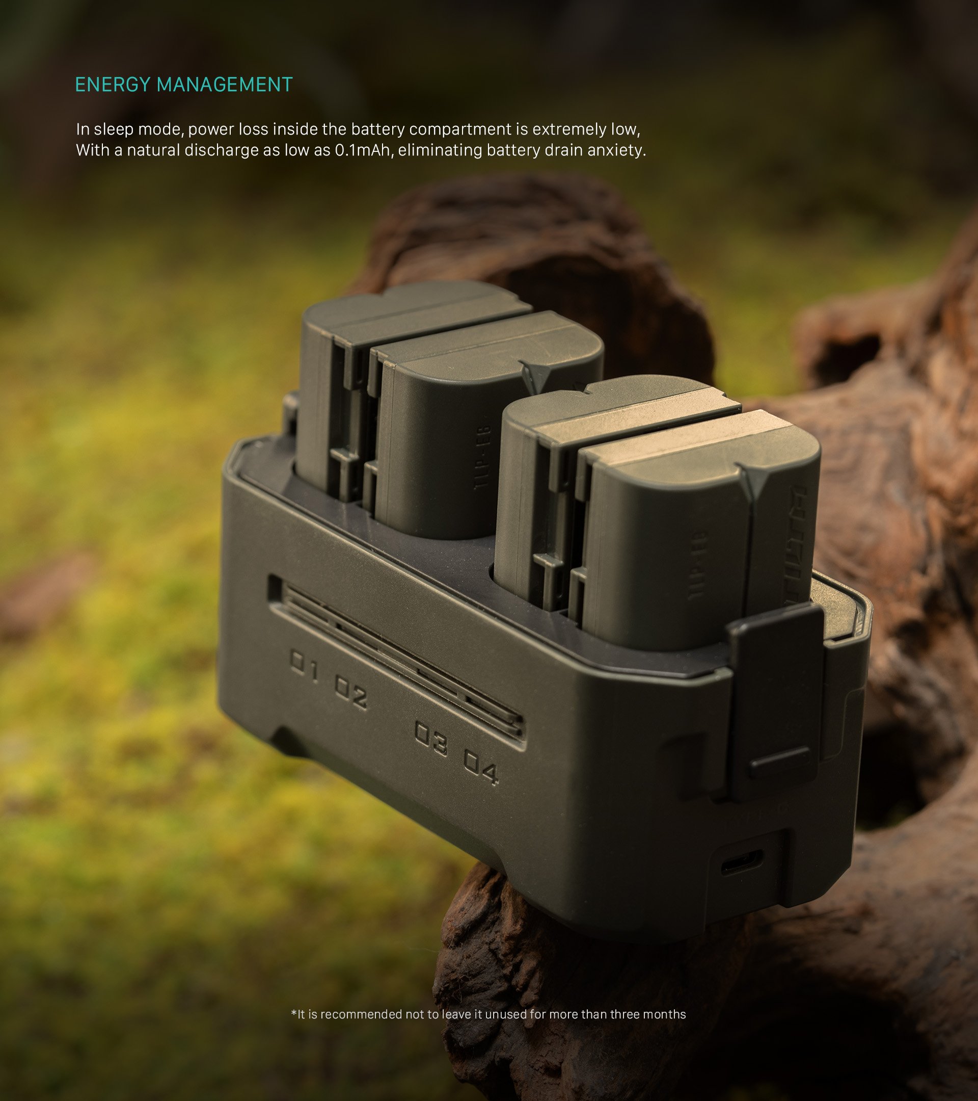 Táto kompaktná nabíjacia stanica je navrhnutá tak, aby podporovala batérie LP-E6 od spoločnosti Canon a iných výrobcov, a ponúka štyri sloty na jednoduché nabíjanie a pohodlné skladovanie. Je vybavená rýchlym nabíjaním PD s výkonom 45 W a poskytuje o pôsobivých 68 % vyššiu rýchlosť nabíjania ako štandardná jednoduchá nabíjačka, vďaka čomu sú vaše batérie pripravené na akciu už za 3 hodiny.