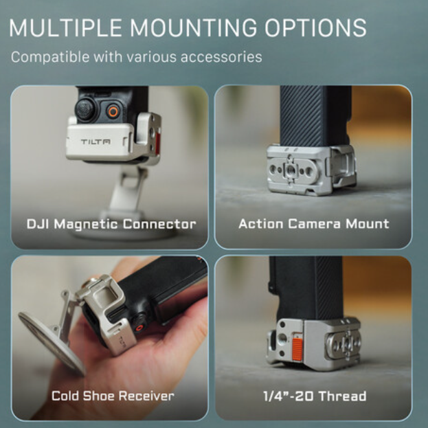 Súprava magnetických príslušenstiev Tilta pre DJI Osmo Pocket 3 ponúka univerzálne magnetické a mechanické možnosti upevnenia, viacero bodov pre príslušenstvo, plný prístup k fotoaparátu a kĺbové polohovanie – to všetko v elegantnom titánovo bielom vyhotovení. Táto súprava je ideálna pre tvorcov, ktorí potrebujú kompaktné, ale vysoko prispôsobivé riešenie upevnenia. Ponúka prémiovú univerzálnosť s čistým, moderným dizajnom.